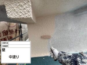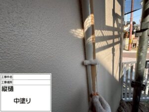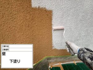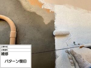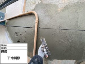 下地の補修をカチオン系補修材で行い、本来の外壁のように均等でなめらかな土台を作ります。
