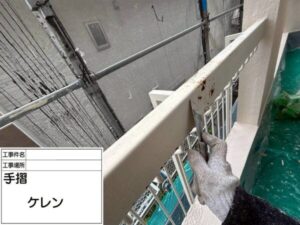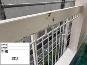手すりは鉄製のため、塗膜の剥がれにサビが見られました。